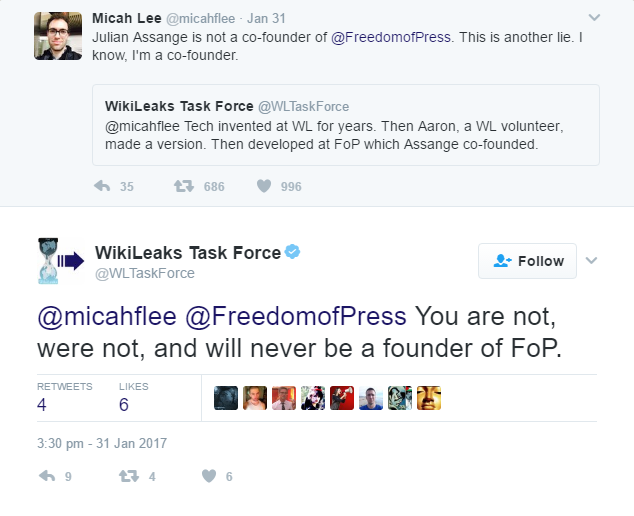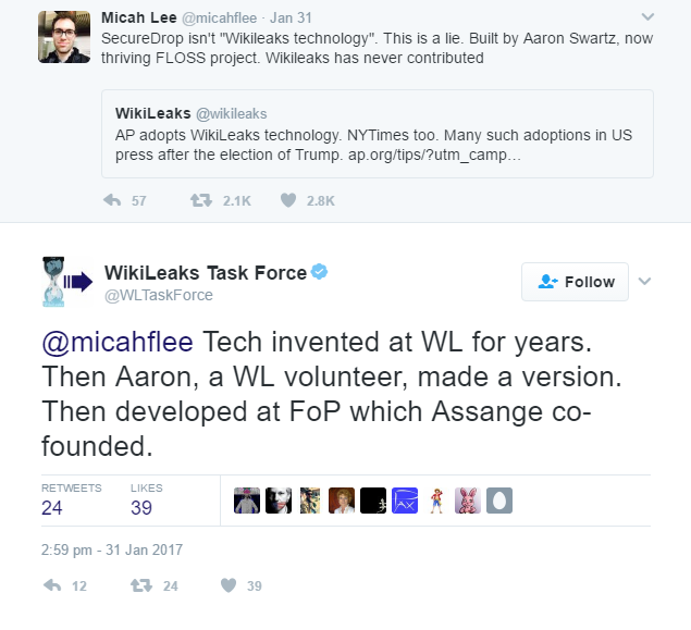 WikiLeaks claims it invented popular whistle-blower program SecureDrop and that Julian Assange co-founded the Freedom of the Press Foundation (FPF) – claims denied by FPF co-founder Micah Lee in heated exchange with the WikiLeaks Task Force