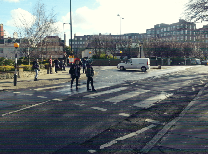 A coupla punks stop on the famous Abbey Road crossing
