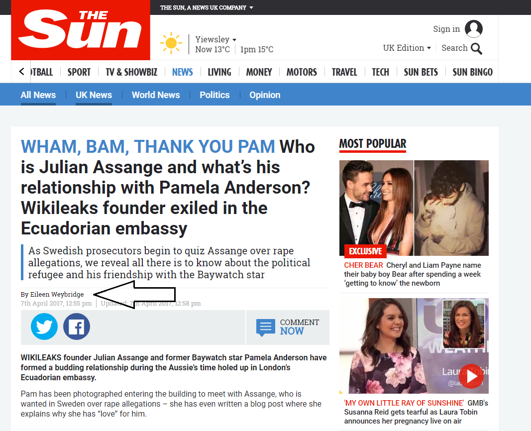 […] Wednesday, I asked if The Sun created a fake reporter to byline a story which falsely claimed WikiLeaks founder Julian Assange had sexually assaulted two […]