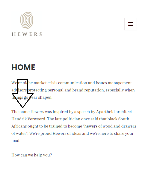 The Hewers website states that “the name Hewers was inspired by a speech by apartheid architect Hendrik Verwoerd,” and even quotes “the late politician” as saying that “black South Africans ought to be trained to become ‘hewers of wood and drawers of water.’”