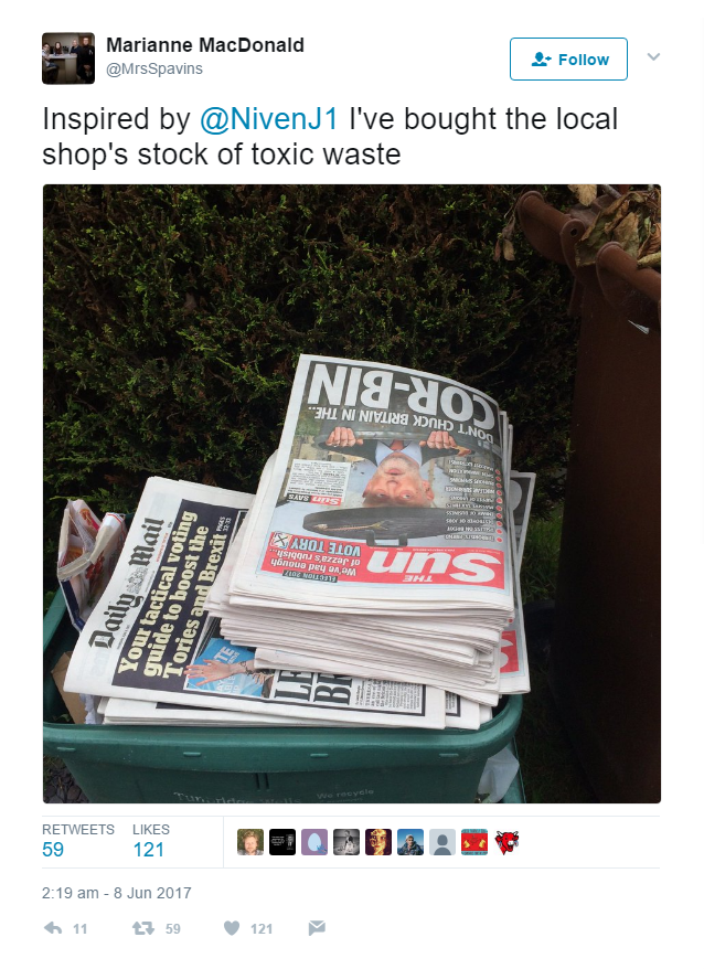 Labour voters reportedly binning and burning copies of pro-Tory newspapers in lead-up to UK general election