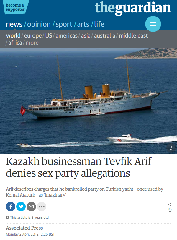 According to the Lumen Database, which collects and analyses takedown requests of online content, Arif recently sent Turkish court orders to Google and Automattic (WordPress’ parent company) demanding the removal of a number of sites and blogs – including The Huffington Post and The Guardian – that reported about his 2010 arrest aboard the MV Savarona, the presidential yacht of the Republic of Turkey.