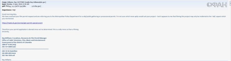 Here’s what the DC Metropolitan Police Department’s Director of Communications told me when I asked if his department had denied USA Really’s rally permit: