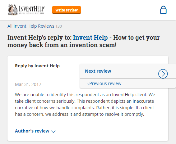 Although the negative reviews are still available to view via that second domain, most have been moved to the back of the website, while many others, including the anonymous review quoted above, are only available to view by clicking a drop-down option below InventHelp’s own, more prominently positioned replies to the reviews.