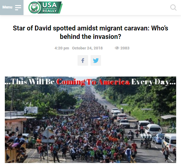 Articles on the USA Really website, such as the anti-Semitic “Star of David spotted amidst migrant caravan: Who’s behind the invasion?,” mirror the same kind of false, misleading, and purposefully offensive content peddled by the Robert Mueller-indicted Internet Research Agency, better known as the Russian troll factory.