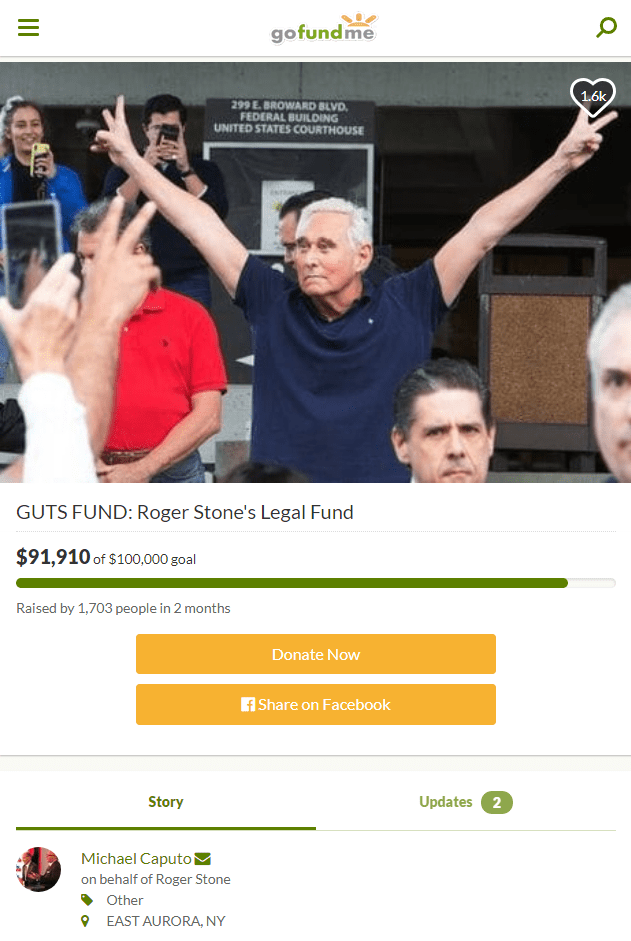 Caputo recently set up two legal funds, one to cover the costs of his “voluntary cooperation with multiple US Government investigations,” and another to raise $100,000 on behalf of former Trump campaign adviser and self-proclaimed “dirty trickster” Roger Stone, who was indicted last month for allegedly lying to congress about his interactions with Wikileaks during the 2016 presidential election.