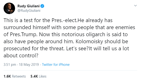 — Rudy Giuliani (@RudyGiuliani) May 18, 2019