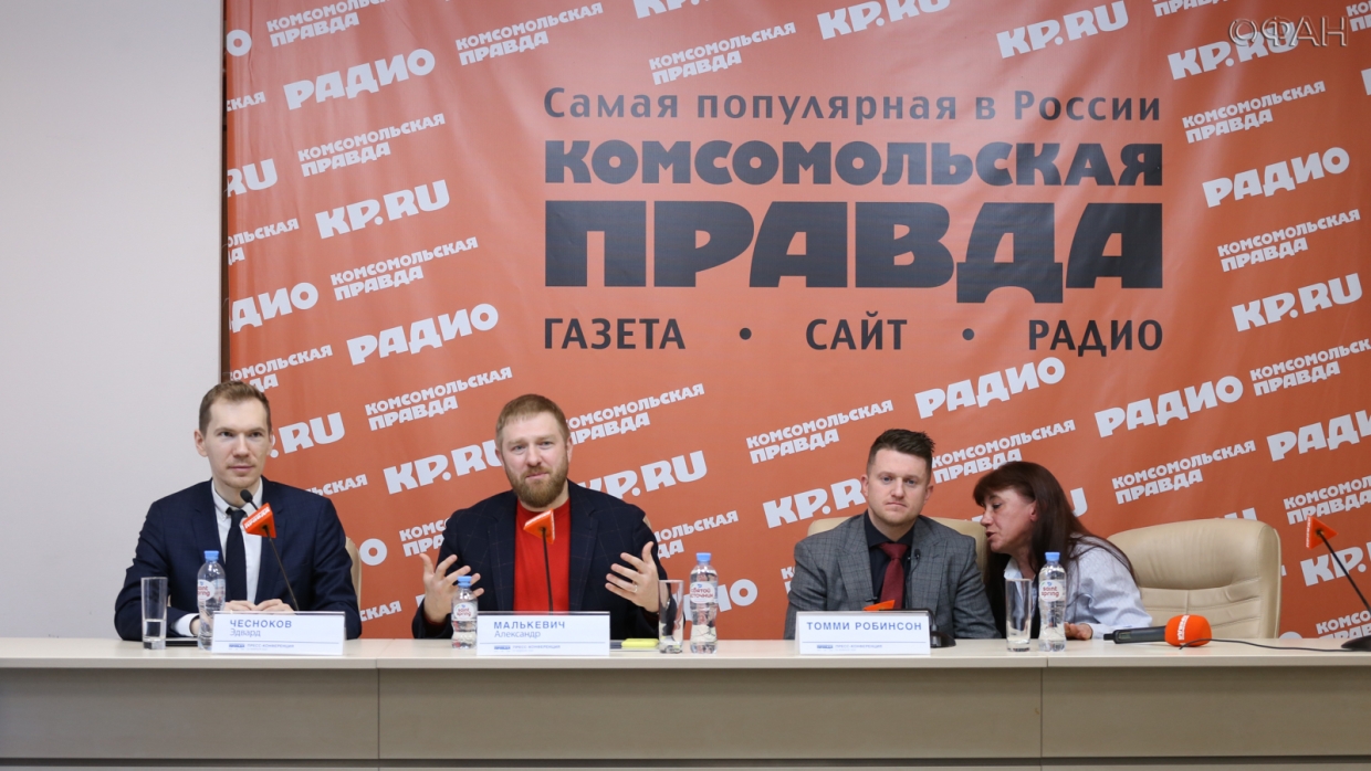 Robinson’s other engagements last week included a speaking gig at a meeting of the Libertarian Party of Russia, a bumpy interview on Russian state-backed TV network Russia Today, and a press conference at the headquarters of Komsomolskaya Pravda (KP), a pro-Kremlin tabloid that once suggested that the U.S. orchestrated the 2015 Charlie Hebdo terrorist attack.