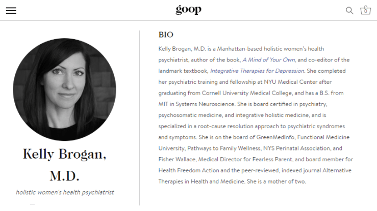 Kelly Brogan, M.D., a New York Times bestselling author/psychiatrist who writes for Gwyneth Paltrow’s alt-med Goop newsletter, has accrued over 30,000 views on Instagram by claiming the coronavirus likely doesn’t exist. [UPDATE: Click here for my follow-up to this story in The Daily Beast.]