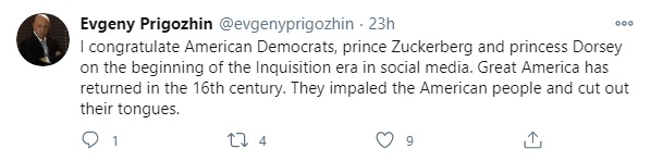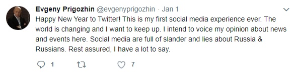Yevgeny Prigozhin, the Russian catering oligarch widely believed to be behind St. Petersburg’s infamous troll farm, was booted off Twitter late-January — one month after joining the site — for a series of trollish tweets that veered drunkenly into self-parody.